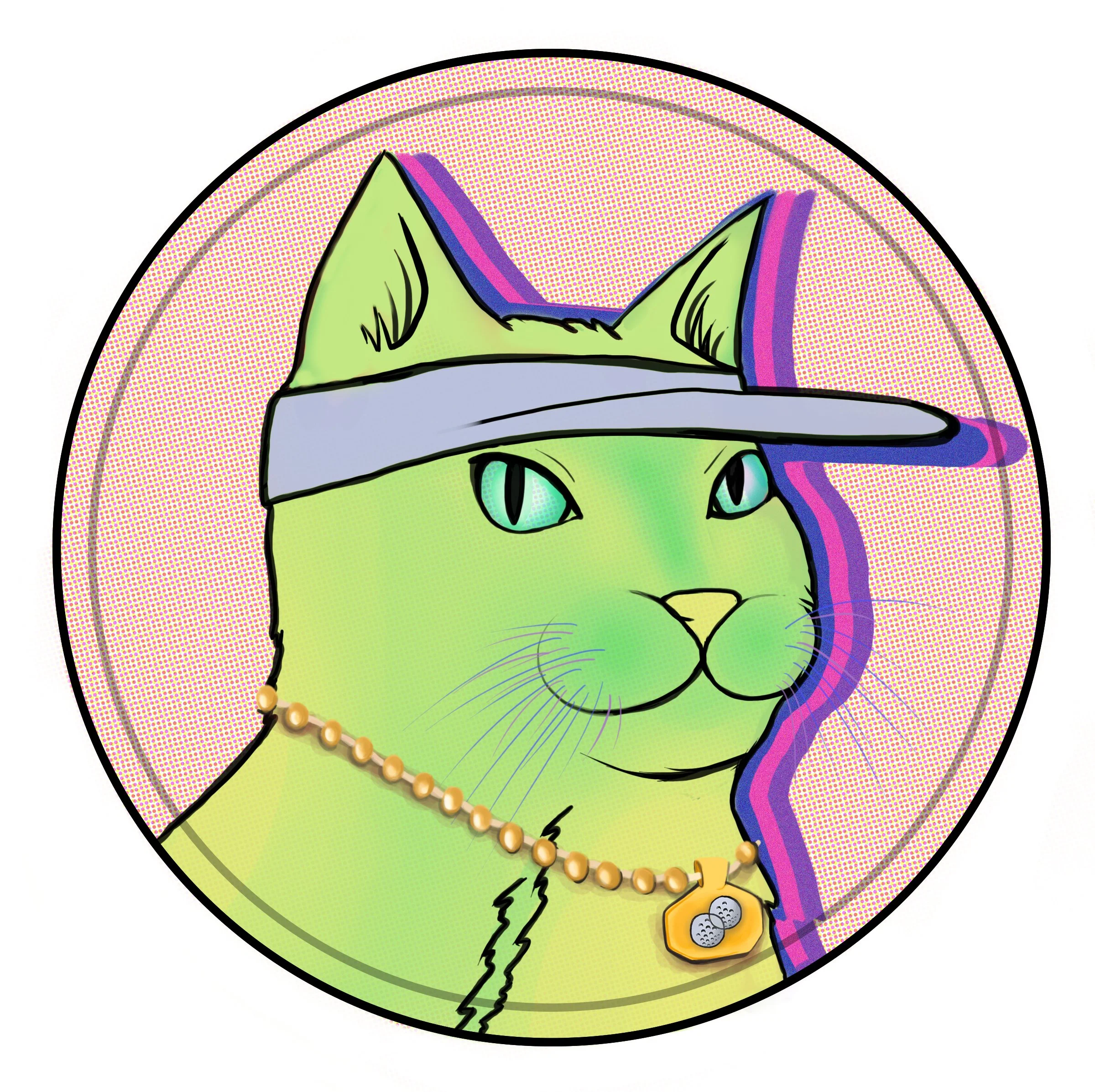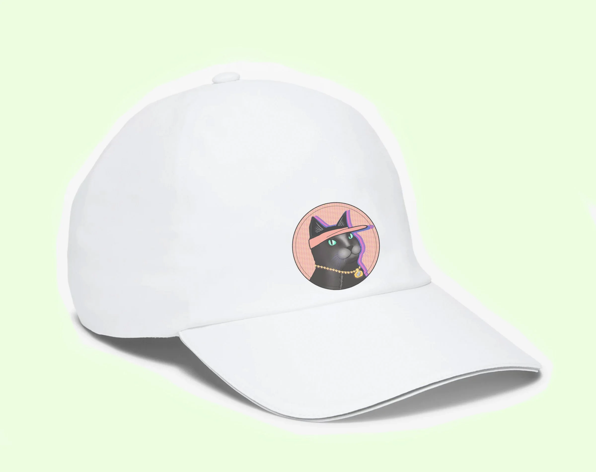 A client asked for a design on tennis hats for her and her friends. As big fans of cats, they wanted it cat-themed and with the cat wearing a hat as well as having jewelry. I created many different renditions for this client, but here are a few of my favorite and the initial sketches and mockup.